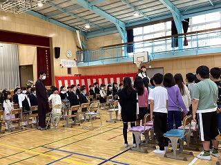 先生方の挨拶と児童会代表児童のあいさつに、みんな静かに耳を傾けていました。子どもたちも先生方も思いがあふれて、涙・・・涙・・・のひとときでした。