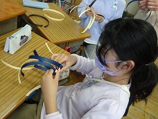 勾玉と焼き杉に分かれた活動だったので、作り方を説明して、お互い作品を見せ合いました。