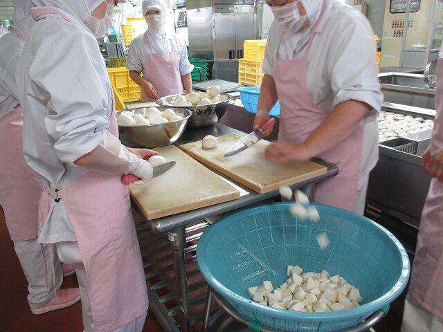 今日は、柏のかぶをたっぷり使って厚揚げと合わせてあんかけにしました。かぶは全部で100kgくらいありました。一つずつきれいにしてから16等分にしました。手作業で切るので、とても大変です。あんかけもたっぷりあるので、ご飯と一緒に食べてください。