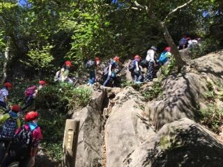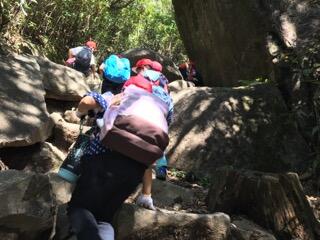 山頂に近くなると岩だらけです。全身を使って、一生懸命登ります。