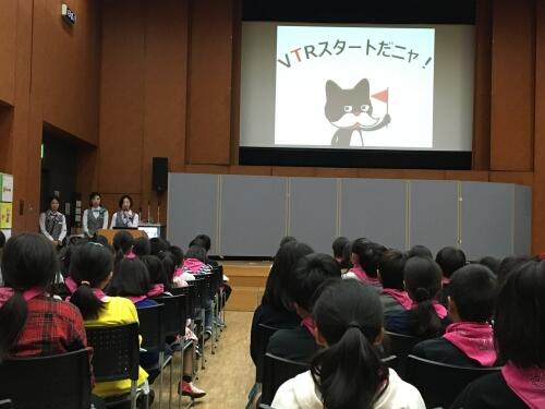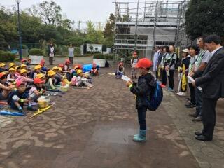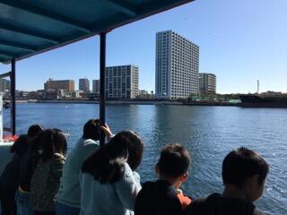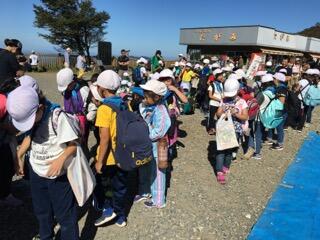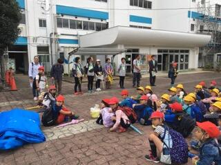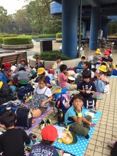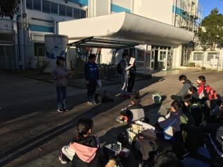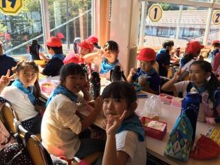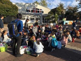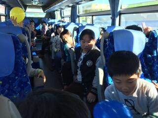 4年生が校外学習に出かけました。すっきりと晴れた青空、さわやかな風の吹く良い天気です。実行委員を中心に、出発の会を行いました。行ってきます!