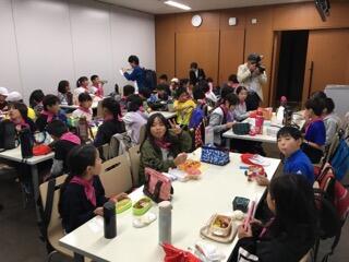 見学の途中でお昼の時間になりました。部屋を借りてみんなで、いただきます!