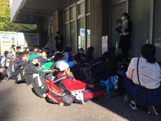 台風にも負けず、予定通りの行程で、千葉市動物公園に出かけます。実行委員を中心に出発の会を行いました。