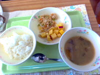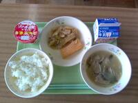 今日の給食は、千葉県産の豚肉が入った味噌汁が出ました。