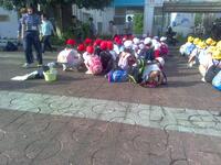 1,2年生たちが校外学習の出発の会をしていました!前に実行委員がいて大きな声で発表していました!