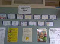 給食委員会が企画した「おいしい牛乳をありがとう絵手紙コンクール」が家庭科室の掲示板に貼っていたので見てみてください!(音・海・りんご)