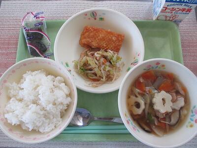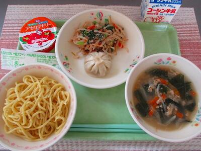 11月29日 牛乳 牛乳入りとんこつしょう油ラーメン(ちゃんぽん麺) 多菜包子 中華ごま和え アセロラゼリー