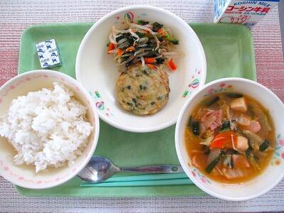 今日の献立は大津ヶ丘中の2年生が考えた献立です。少しピリッと辛いスープですが、食べて体を温めてください。