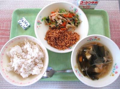 12月13日 牛乳 麦ご飯 回鍋肉 うすら卵とわかめのスープ