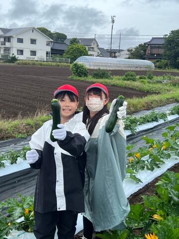 畑に行ったチームは、農作業や野菜収穫体験を行いました。(校長 佐和)
