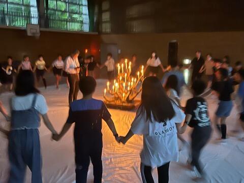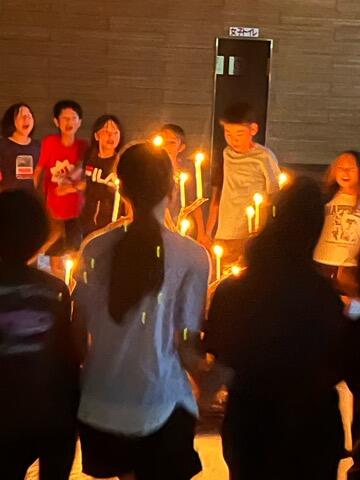 キャンドルファイヤーはスタートから大盛り上がりです。(校長 佐和)