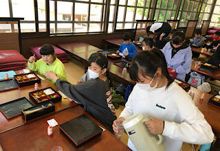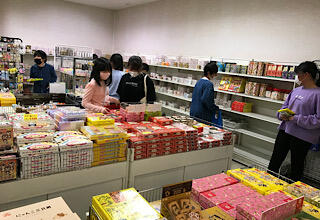 クラスごとにお風呂と買い物の時間です。明日の買い物の予定も考えながら選びます。