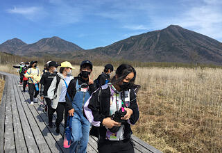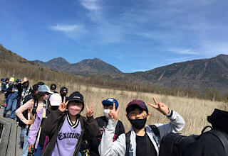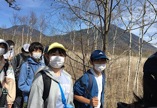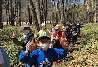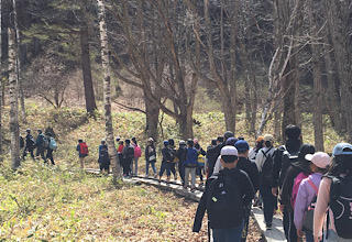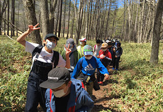 まだ着かないんですか? 結構長いハイキングですが、空気も景色も良くて、みんなで歩くと気持ちがいいね。