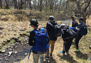水の音や鳥の鳴き声が風のなかに響きます。サルやシカ、クマを見かけることもあるそうです。