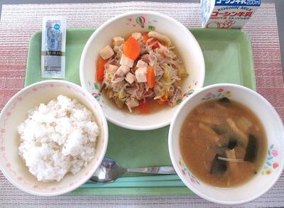 3月12日 牛乳 ご飯 味付けのり めひかりの唐揚げ(2本) 炒り鶏 芋団子の味噌汁
