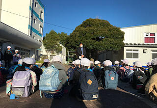 学校に戻ってきました。到着の会を行いました。今日はめあてを守って、楽しく活動することができました。とてもよい校外学習でした。