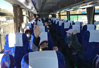 今日はいよいよ楽しみにしていた校外学習です。お天気は最高。