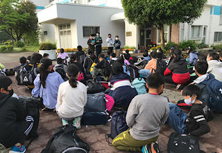 見学を終えて、帰る支度をしています。楽しかった。