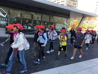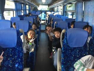 すっきりと晴れた青空の下、校外学習に出発です。朝はやや肌寒いですが、到着の頃は気温が上がってくるでしょう。