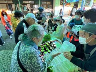 校長:大津ケ丘商店会のイベントで農作物を販売しました
