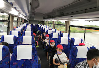 バスの中はレクで盛り上がっています。文字バラバラクイズです。レク係がとても頑張っています。日光クイズも出題され、学習を深めています。