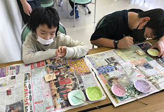 上手に模様を形にする人、イメージに合わせて好きなように色をのせる人、それぞれのオリジナリティーで作品を作っています。