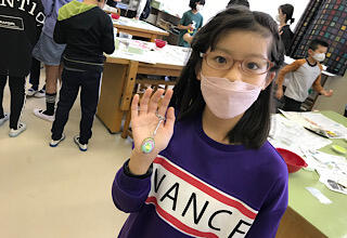 七宝焼に挑戦します。うまくできるかな。先生にあいさつします。