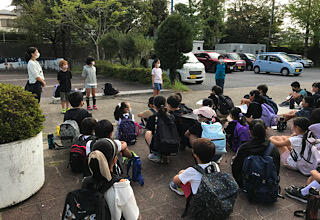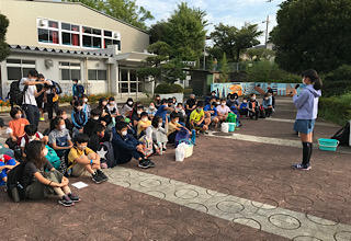 さわやかな風が吹く中、校外学習の出発の会を行いました。