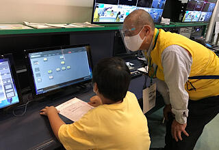 1組の映像制作体験の様子です。みんな緊張しながら、自分の力を発揮しようと頑張っています。