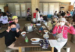 朝ごはんのあとは昼ごはんの準備。野外炊飯です。美味しいカレーができるといいな。