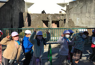 猿たちに合わせて大津一小子猿たちも鳴き声をあげています。