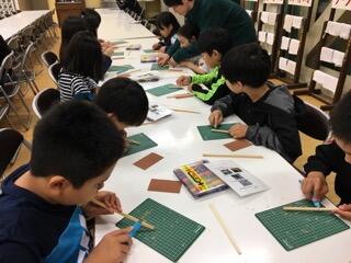 夜はクラフト体験を行います。所員の方から説明を聞き、箸、メッセージボード、竹とんぼから選んだものを製作します。