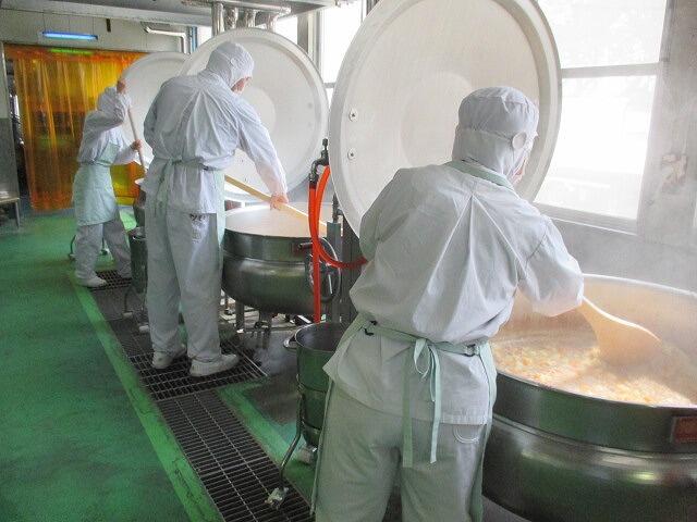 今日は大きな釜1つと小さな釜3つで4500人分のカレーを作りました。