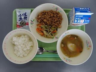 6月12日 牛乳 ご飯 いかのかりん揚げ 枝豆入りごま和え 芋団子汁