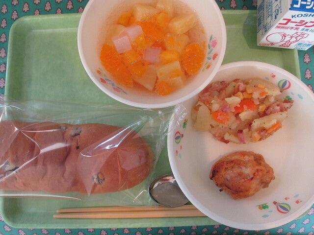 6月21日 牛乳 ぶどうパン パプリカグリルチキン ジャーマンポテト フルーツパンチ