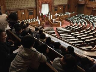 写真は本会議場の中心で、天皇陛下のお席はカーテンの向こうにあるそうです。