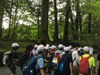 先生のお話です。今日のスローガンは、「感謝、思い出、学ぶ」です。日帰りですが、自分たちだけの大切な感動と思い出を作れるといいと思います。