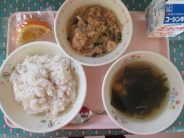 5月26日 厚揚げの味噌炒め丼 絹さやのすまし汁 甘夏みかん