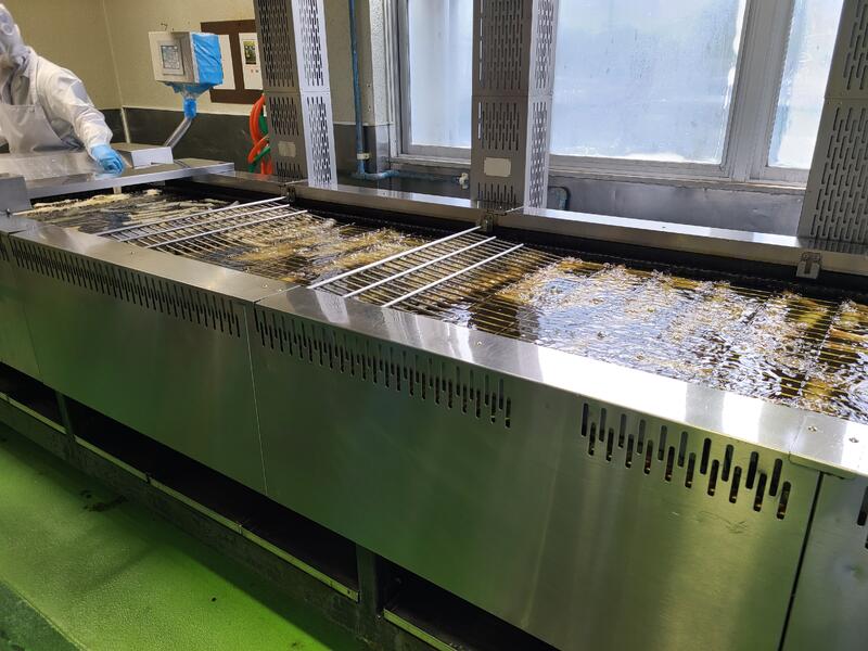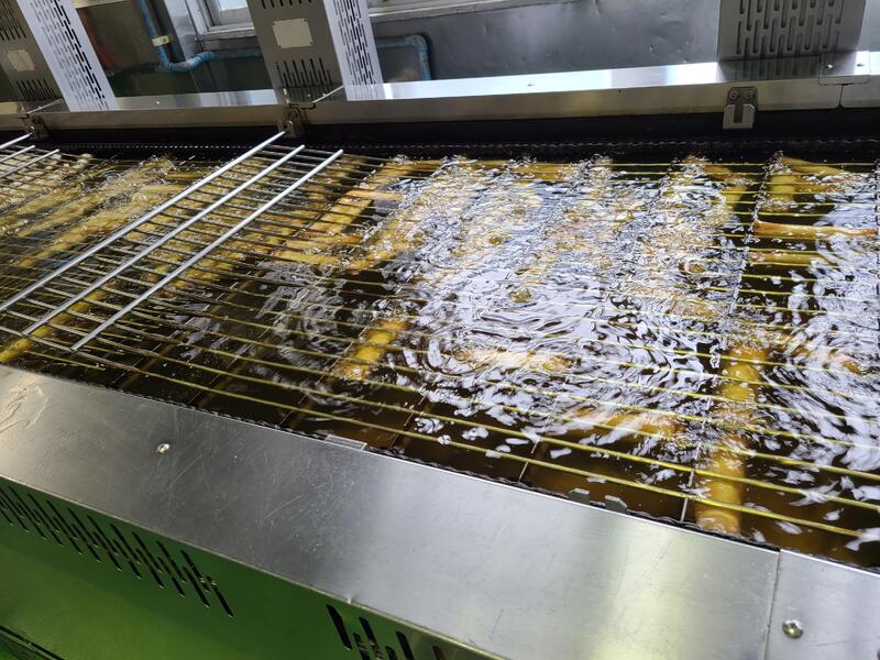 今日の春巻きは、揚げていると浮いてくるので写真のようにあみをのせて揚げています。
