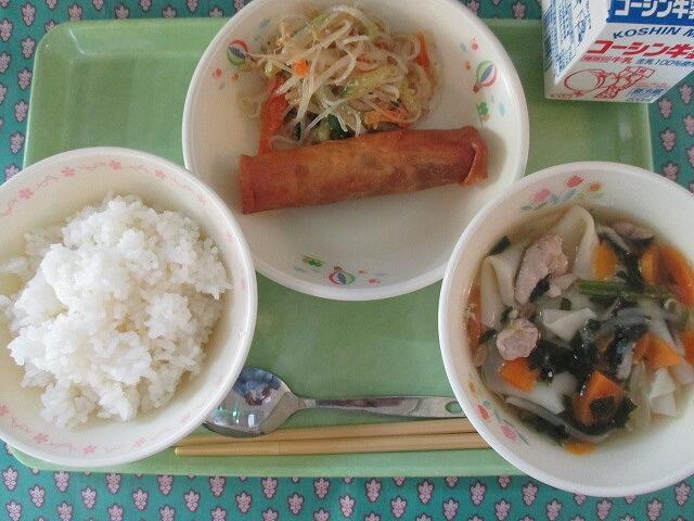 6月2日 牛乳 ご飯 春巻き バンサンスウ ワンタンスープ