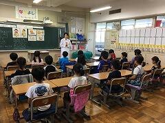 給食センターの栄養士さんが,1年生を対象に食育授業を行いました。内容は,食事のマナー,はしの持ち方などです。