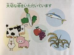 野菜も肉も牛乳も大切な命をいただいています。苦手なものも食べる努力をして,楽しい食事ができるといいなと思っています。(校長)