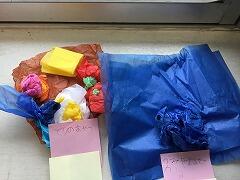 1年生が図工で「くしゃくしゃがみから生まれたよ」の学習を行いました。いわゆるお花紙と呼ばれる色つきの薄い紙をくしゃくしゃに丸めたりたたんだりして,作品を作ります。図工では,自分が作りたいものを想像し,その思いに沿って材料の加工を工夫して創ることが大切とされています。