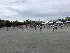 1・2年生の運動会のダンスは,ディズニーの「アンダー・ザ・シー」と「アロハ・エ・コモ・マイ」です。今日は,入場から退場まで通して踊りました。隊形をよく覚えて,曲に合わせて動くことができました。張り切っている子どもたちです。