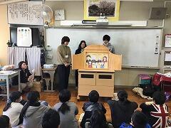 紙芝居は,実際に沼南地域で起きたできごとをお話にまとめ,二松学舎の学生さんが絵を描いた手作りのもので,子どもたちは先生たちの読み語りに聞き入っていました。