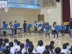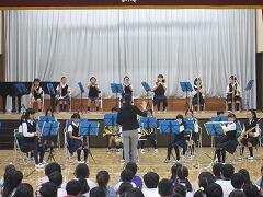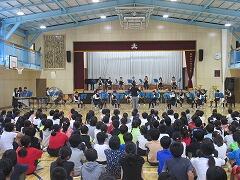本日,朝の時間に「吹奏楽部を励ます会」を行いました。紺のベストにスカートとユニフォームがそろうと共に,音もそろって美しい音色を響かせてくれました。今年度になって初めて,4~6年生が全員そろっての演奏で,「Lemon」と「喜びの風」の2曲を披露してくれました。