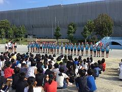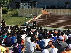 全校朝会・陸上部を励ます会