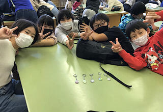 焼き上がったら型にはめて、キーホルダーにします。とてもきれいに全員仕上がりました。