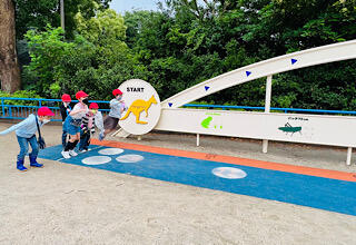 カンガルーとジャンプで競争。