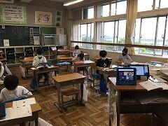 本日から自宅で学習しているお子さんにオンライン会議に入ってもらって,一緒に学習する「オンライン授業」を始めました。ネットワークが不安定で途中で切れてしまったり,音声がうまく聞こえなかったりすることもありましたが,「普通に授業を受けているように,黒板も見えたし,先生の話もわかりました」という感想が多く,ホッとしています。